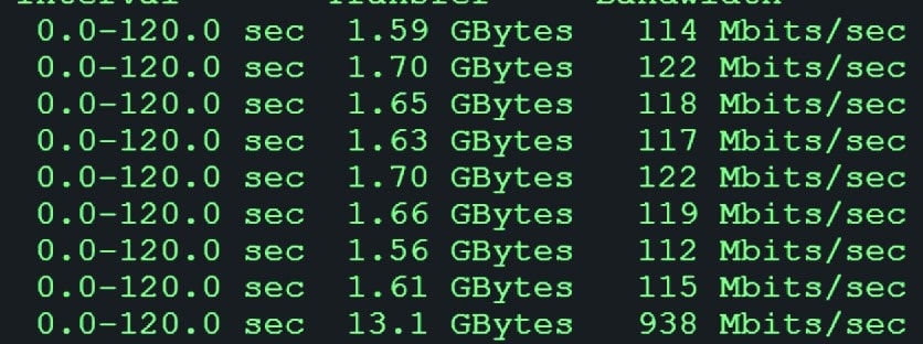 This is a point to point test across the fiber network. Traffic was generated on a PC and received by a router connected by our fiberoptic cables. Latency was sub-millisecond. This is the lower end of what the system is capable of.