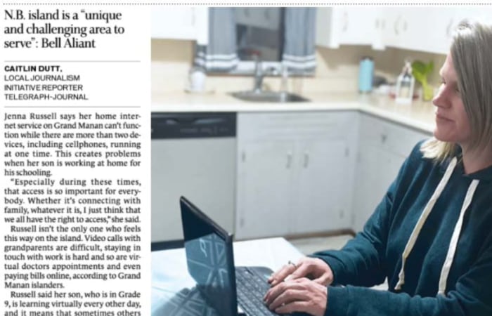 Today's edition of the Telegraph-Journal features an article about internet service on Grand Manan and the challenges faced by islanders who only have access to internet from traditional telecom companies. It also mentioned our upcoming access to the undersea cables, our goals to provide 1000 MB service, and our plans for full island coverage.
